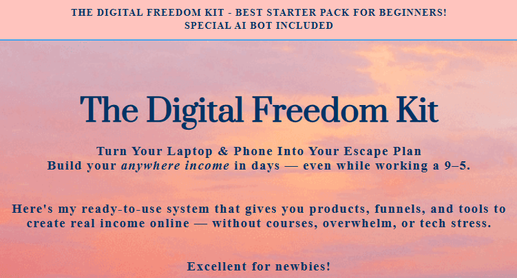Are you tired of working endless hours, watching your paycheck disappear before the month ends, and feeling like freedom is always just out of reach? The Digital Freedom Kit was built for you—the dreamer, the go-getter, the one who knows there’s more to life than trading time for money.